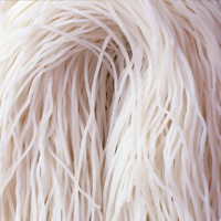 3將300克米粉沸水煮制,瀝干水分,倒入碗中。